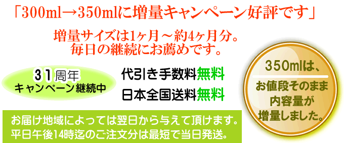 | 猫・小型犬 | 約5〜10cc | 医薬品ではありませんので、目安量を参考に様子に合わせて調節し与えます。付属のスポイト・計量カップでエキスを取り出し、食事や水・おやつに混ぜるか、経口投与で与えます。 【回数】1日1回〜数回にわけて等。 【時間】ご飯時や就寝前などいつでも可。 【保管方法】開栓後は必ず冷蔵庫で保存。 【使用のお願い】成分が結合・吸着する場合がある為、使用時はその都度、ビンをよく振ってから取り出してください。 |